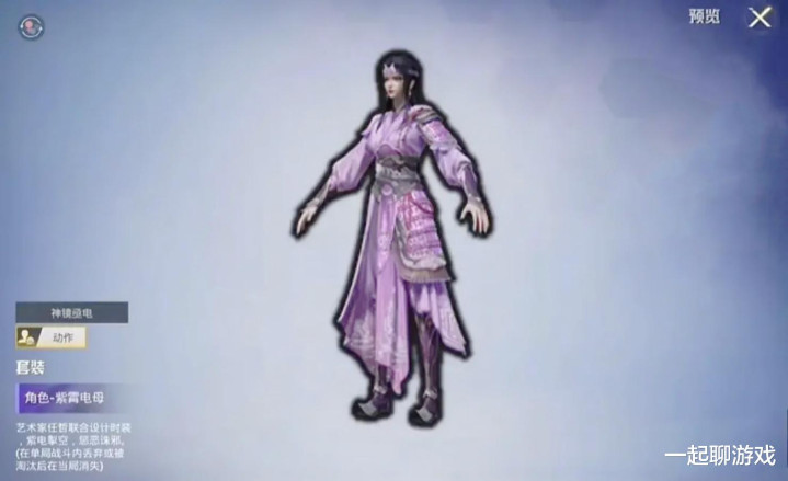 接下来登场的角色叫“紫霄电母”,也是这个系列中唯一的女角色,颜色方面以紫色为主,专属动作被光子命名为“神镜亟电”。